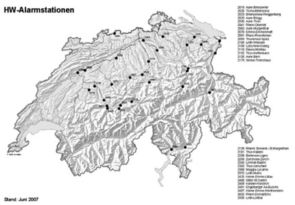Die Abteilung Hydrologie des Bundesamtes für Umwelt BAFU betreibt für Kunden (Kantone, Gemeinden, Kraftwerke) in der ganzen Schweiz Alarmstationen. Wird ein definierter, kritischer Wasserstand erreicht, senden diese automatisch Alarmmeldungen an die zuständigen Stellen.