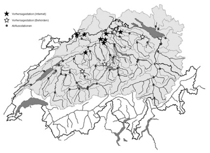 Das Bundesamt für Umwelt (BAFU) erstellt bei normalen Wasserständen von Montag bis Freitag, bei Hochwasser auch an Wochenenden und Feiertagen mindestens einmal pro Tag eine Wasserstands- und Abflussvorhersage für die grösseren Flüsse im Einzugsgebiet des Rheins.