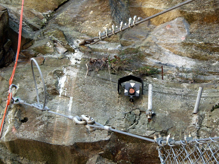 Nach einem grösseren Felssturzschaden an der Brücke durchs Val d’Infern (Calancatal) werden im November und Dezember 2001 verschiedene Messinstrumente wie Extensometer und Telejointmeter zur Überwachung der Felsbewegungen installiert und mit einer Alarmanlage gekoppelt.