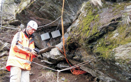 Während den Vorarbeiten zur Sprengung einer instabilen Felspartie an der Südrampe der A13 bei Pian San Giacomo wurde die instabile Felsmasse mit einer elektronischen Messanlage überwacht.