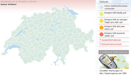 Der nationale Wetterdienst MeteoSchweiz warnt die Schweizer Bevölkerung bei verschiedensten Gefahren, wie zum Beispiel Sturm, Strassenglätte, Hitzewelle, Frost oder Waldbrand.