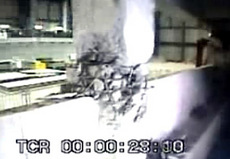 Unter anderem werden in diesem Videoclip Aufnahmen von armierten Beton-Säulen gezeigt (siehe untenstehendes Bild), welche zum Tragwerk des Test-Gebäudes gehören. Diese Betonsäulen werden während dem Test so stark beansprucht, dass die Armierungseisen sichtbar werden.