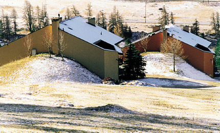Ein Gebäude wird gegenüber den Kräften einer Lawine widerstandsfähiger, wenn man die bergseitige Wand besonders massiv baut – und gleichzeitig die Fläche, mit der sie der Lawine ausgesetzt ist, verkleinert, indem man Erdreich anschüttet.