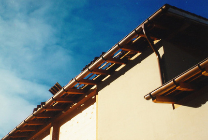 Zerzauselt. Sturmschaden an einem Dachvorsprung (Zernez, 1998).