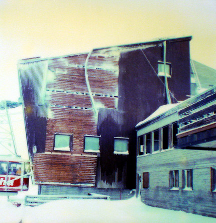 Sturmgehäutet. Sturmschäden an der Fassade der Pischabahn-Bergstation in Davos (1990).