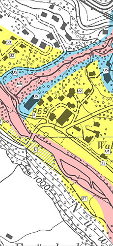 1. Die Wahrscheinlichkeit, dass sich in diesem Gebiet eine Überschwemmung oder ein Murgang ereignet, ist relativ gering.
