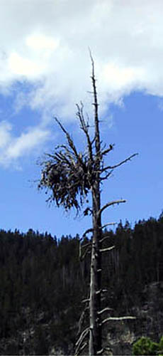 Hexenbesen, Hexenfeuer. Ein abgestorbener «Hexenbesen» im Schweizerischen Nationalpark – ein möglicher Auslöser von Flugfeuern.