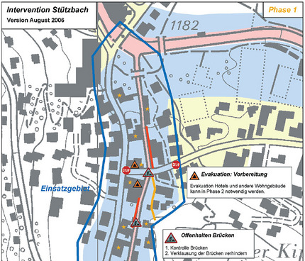 - Wo müssen Baumaschinen bereit stehen, um Strassen oder Schienen zu räumen? Wo muss ein Wasser-Durchlass, ein Kanal offen gehalten werden?