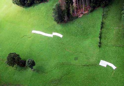 Hasle/Schüpfheim LU, 23. August 2005: In einem Hang deuten Risse darauf hin, dass sich dieser unterhalb der Risse in Bewegung gesetzt hat. Durch die Risse kann Regenwasser in die Rutschfläche eindringen, was die Bewegung unter Umständen fördert.