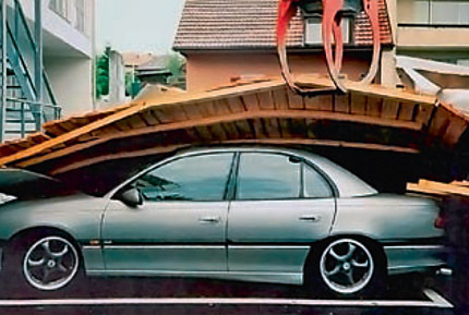 In der Garage wäre das nicht passiert. Während einem Sturm wurde ein parkiertes Fahrzeug von einem weggeschleuderten Dach getroffen.